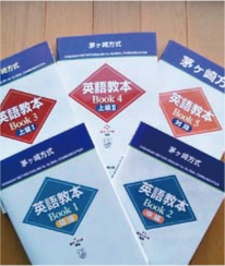 茅ヶ崎⽅式英語会が編集した「国際英語基本4,000語」、「英語教本BOOK1〜5」等を教材に採⽤する